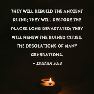 Context îs everything. Each day as I ponder my contribution for the Advent Word ministry, I like to check to see how my initial ideas conform to the scripture from which the day’s word was chosen. So today, my first thought was that most discussions would probably focus on our need to repair ourselves–personal habits, behaviors, and relationships–a penitential kind of reparation as preparation appropriate to the discipline of Advent.