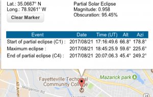 I was ten years old when I made a pinhole projector from a shoebox for my first solar eclipse on July 20, 1963. It reached a mere 30% totality over Globe, Arizona, but I was a curious child, and seeing that moon shadow as it bit even a small piece out of the sun’s globe was exciting enough for me to remember more than five decades later. Sadly, I must have become too jaded to watch the handful of solar eclipses in the 54-year interval. Or maybe it was cloudy; I was living in North Carolina for most of them, after all. But when I learned well over a year ago about the August 21 total eclipse practically in my own back yard, I got the fever. I determined that I would get reservations for South Carolina far in advance and be able to witness this once-in-a-lifetime event in comfort and firsthand.