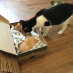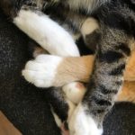Yes, Gentle Reader, he carried her outside to receive the injections that started her journey over the Rainbow Bridge. And then he put her in the car and made the long drive home. Her laid her gently in a box with some treats and a favorite toy, writing just as movingly, “She is going in a box she used to sleep in as a kitten. In a box from cycling shoes called ‘Keen.’ That she was. Her brother said good bye.” Her mother even groomed her one last time before we put her into the soft earth in a grove of trees in our back yard. She lived 1 year, 9 months, and 16 days.