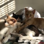 On November 1, 2016, a calico cat now known as Kedi (after the movie) gave birth to four kittens. By the beginning of December, even though the calendar had not officially passed the winter solstice, the weather was cold, and she found shelter for her brood in a broken-down Mazda Miata convertible missing its plastic rear window. My husband Pavel, the owner of the car, had become a crazy cat lady soon after we adopted our first cat, Eppie, in 2010. So when he found this family in his car, he brought them inside and put them in a spare room sequestered from our other cats. They were all sniffling and snorting and coughing, so he took them to a veterinarian, who helped them recover. The kittens were three males in tuxedos and a ginger female, who became Maggie. As kittens do, they soon won our hearts.