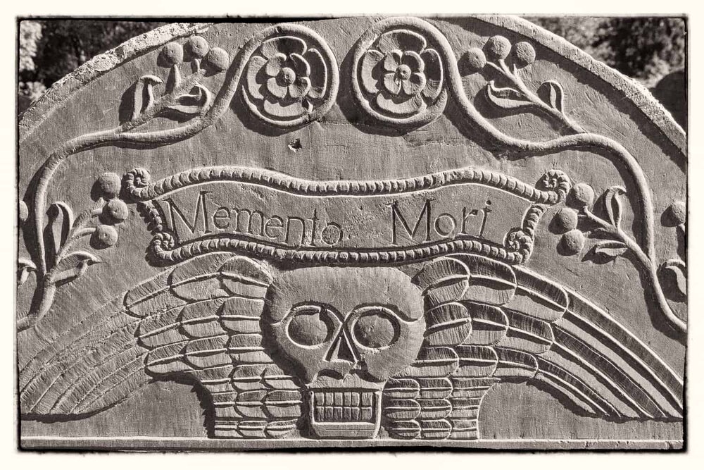 The funerary art of the 1600s in New England also reminded our Puritan forbears always to remember death: